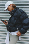 The jacket version of our In A Bubble Vest, this warm puffer features a water-resistant, ripstop fabrication with a cropped silhouette and high collar.