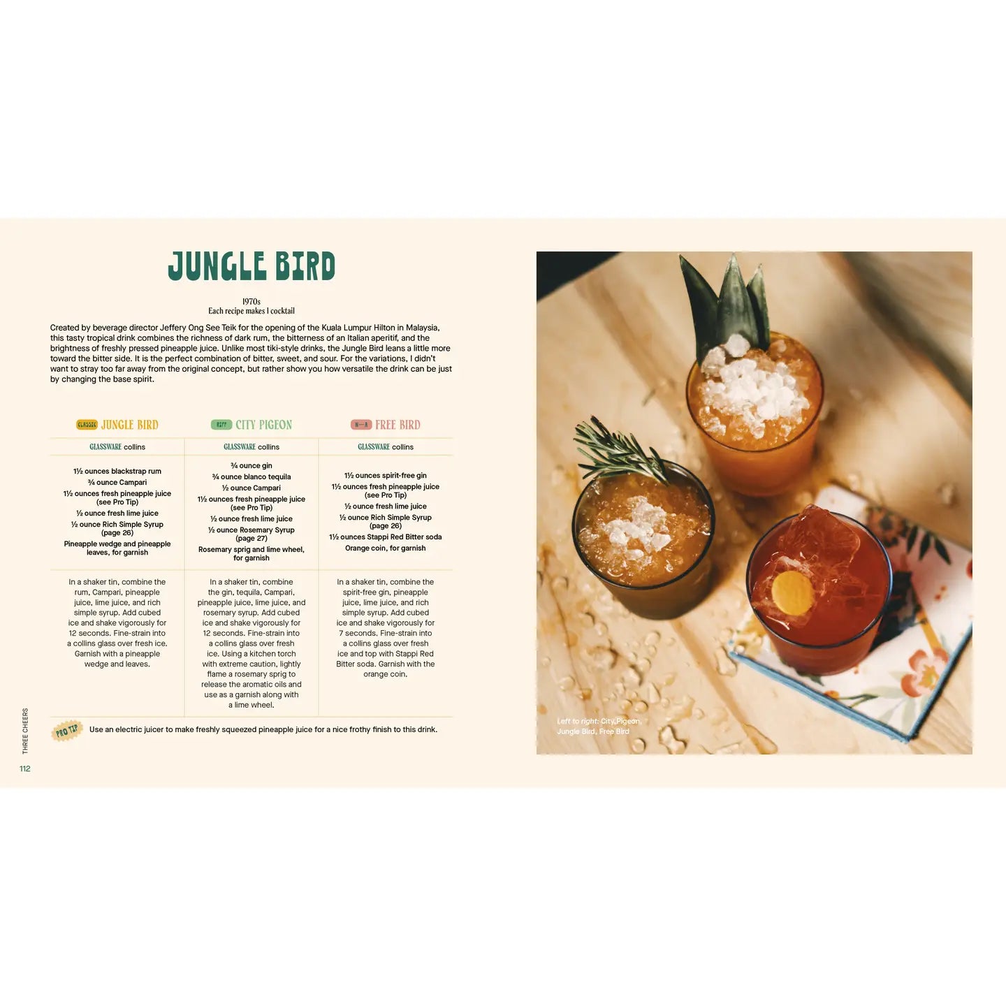 A love letter to cocktails in all their forms, Three Cheers has a drink to suit every mood and occasion. This clever cocktail book offers recipes for three versions of 55 classic cocktails (165 recipes in total!). Whether you like to keep it classic, try a new twist, or a enjoy a spirit-free version, this book gives you all three options: • The classic Jungle Bird tropical cocktail has a blackstrap rum base; the modern spin called the City Pigeon has a white rum and gin base; and the spirit-free option, aptly named the Free Bird, has a spirit-free gin base. • The classic Cosmopolitan features a cranberry and vodka base; the modern Ru-Paulitan infuses earl grey and limoncello flavors into the original cranberry vodka; and the zero-proof Metropolitan utilizes a nonalcoholic spirit and aperitif. • The classic, coffee- and vodka-forward Espresso Martini gets modernized into a Bean Around the World cocktail that swaps vodka for tequila and chile liqueur for a spicy interpretation. The spirit-free Death Before Decaf pairs the espresso with tonic water for a nice, long finish. With a modern design and lush photographs, margaritas, Manhattans, negronis, and more are accessible to every palate and every persuasion.